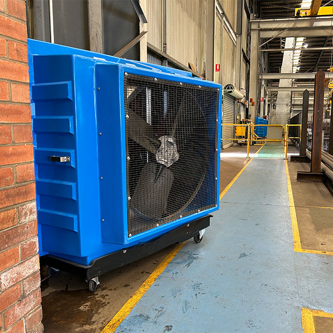 Our portable evaporative coolers deliver cost-effective, natural cooling across commercial and industrial sites. They are ideal for open or semi-enclosed areas such as warehouses, workshops, and outdoor workspaces. Easy to deploy and environmentally friendly, they offer a fresh, energy-efficient alternative to traditional air conditioning.